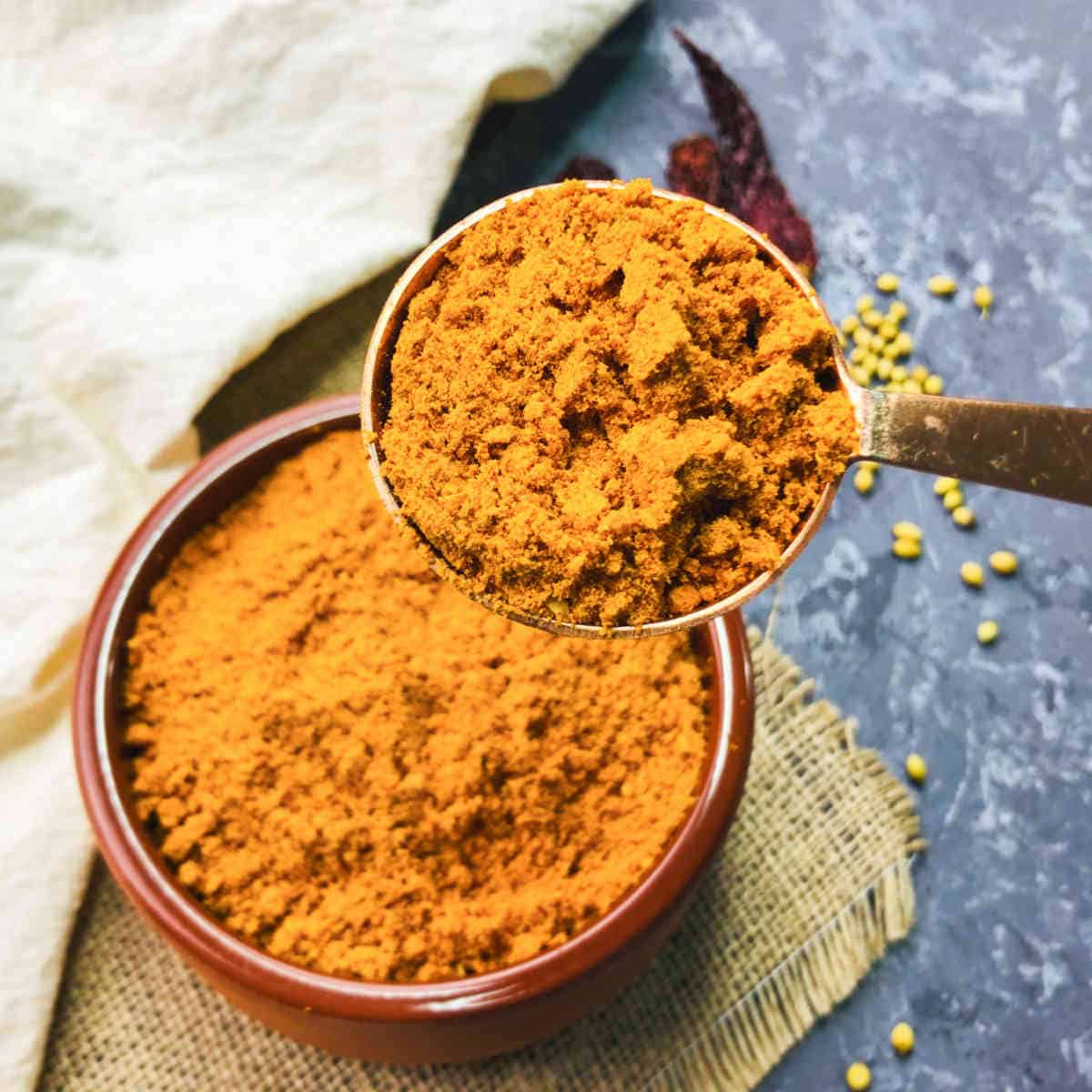 Traditional South Indian Spice Assortment Features Mudukulathur and Ramnad Red Chilli Powders, Sambar, Kulambu, and Non-Veg Curry Masalas for Authentic Flavor.